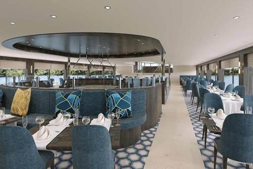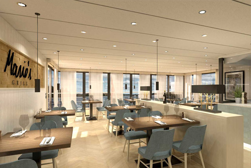 Kabineninformation: Helle Farben und modernes Design mit optimaler Raumnutzung – in die Ausgestaltung der 14 qm großen Kabinen wurde besonders viel Herzblut investiert. Das Ergebnis wird einem First-Class-Hotelzimmer in nichts nachstehen. Das bequeme Doppelbett kann auf Wunsch getrennt gestellt werden, auf Mittel- und Oberdeck sorgen die französischen Balkone (bodentiefe Panoramafenster) für beste Aussichten. Im Badezimmer finden Sie bequeme Ablageflächen, für Ihre Garderobe ist im Kleiderschrank natürlich ausreichend Platz. In unserem Spezialitäten-Restaurant erwarten Sie thematische Buffets, die unseren Küchenchefs ganz besonders am Herzen liegen. Alle Speisen sind auf das jeweilige Motto abgestimmt. Nicht nur die Speisen - auch die Getränke und sogar die edle Dekoration des gemütlichen Raumes harmonieren immer perfekt. Ein Ort für ganz besondere Anlässe – natürlich ohne Aufpreis. Das Einzige, was Sie entscheiden müssen: Welcher Abend soll es sein. An der Rezeption nehmen wir Ihre Tischreservierung gerne entgegen.